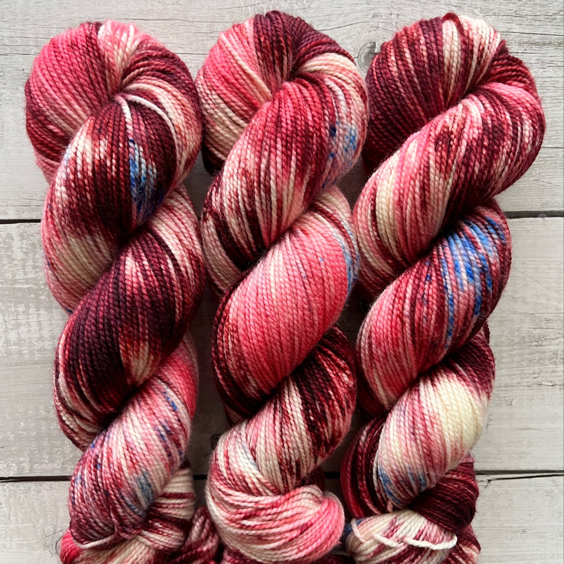 Her får du et eksklusivt håndfarvet fed garn fra en tidligere Mystery Fiber Box. Farven kan du se på billedet, men selve garnbasen forbliver en del af overraskelsen. Måske er det blødt og luksuriøst merino, måske en spændende blanding med glans eller tekstur – uanset hvad, kan du forvente en lækker kvalitet, som altid er håndplukket med omhu.